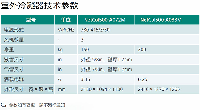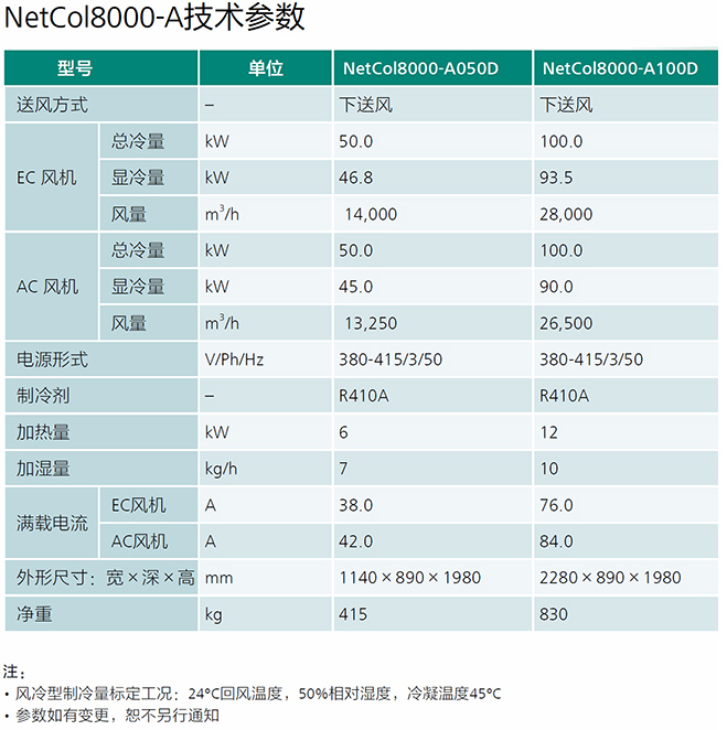 NetCol8000-A是華為公司推出的R410A系列風(fēng)冷房間級精密空調(diào), 由室內(nèi)機和室外機構(gòu)成,采用高效渦旋壓縮機、大面積蒸發(fā)器、EC風(fēng)機(可選)、 紅外加濕和PTC電加熱。制冷量有50kW(下送風(fēng))、100kW(下送風(fēng))等規(guī)格。通常部署在機房四周,可靠墻安裝,可100%正面維護,風(fēng)機下沉安裝,提高送風(fēng)效率。具有高效、可靠、易安裝維護等特點,助力于打造下一代綠色數(shù)據(jù)中心。