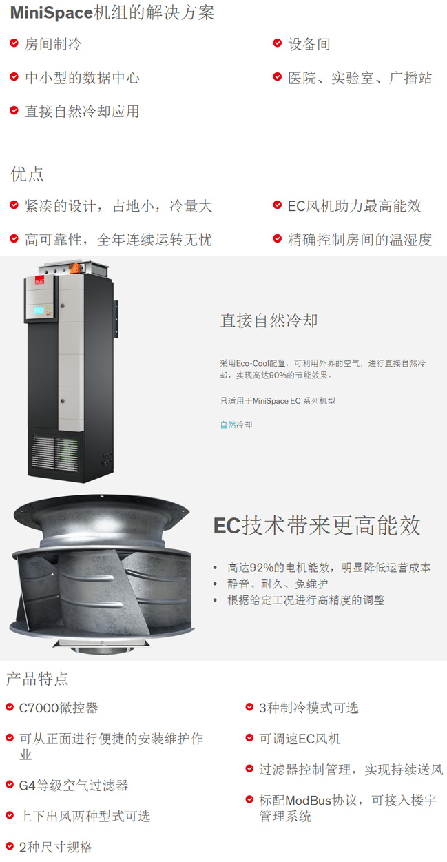 【史圖斯MiniSpace系列精密空調】價格、參數(shù)如果您的小型設備間或機房,需要精密、可靠且經濟的機房空調,那么,節(jié)能、耐用的MiniSpace系列產品將會是您的完美選擇。該機組僅占用很小的空間,它緊湊的設計讓您可以輕易的把它放入現(xiàn)有的機房當中。