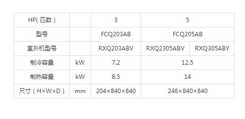 大金天花機(jī)參數(shù)
