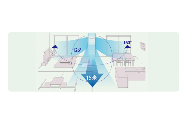 15米超遠距離160度廣角對流送風,迅速將舒爽遍布每個角落,體現無處不在的關懷。