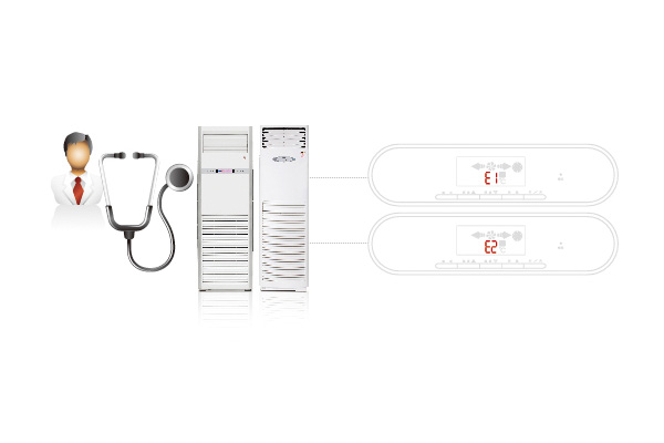 當空調機在運轉過程中出現故障時,可通過控制系統對空調器進行故障自檢,將檢驗的結果轉化為相應的故障代碼,顯示在控制面板上,然后通過說明書中的故障代碼對照表,便可很容易的找到故障的原因,將其排除。
