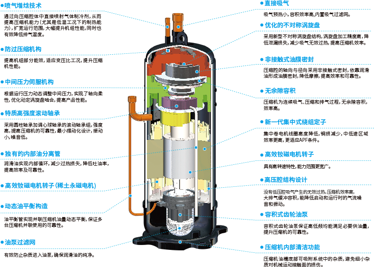 日立高能效(APF)噴氣增焓直流變頻渦旋壓縮機(jī),高效強(qiáng)勁運(yùn)行