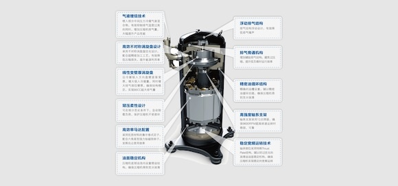 三星高壓腔氣液增焓渦旋式直流變頻壓縮機(jī)
