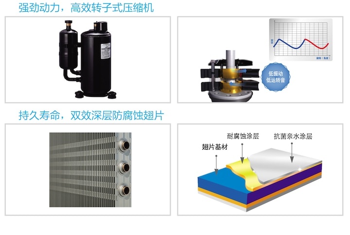 CAC采用三星自主研發(fā)生產(chǎn)的高效轉(zhuǎn)子式壓縮機,強勁動力確保出色的使用效果。其中雙轉(zhuǎn)子壓縮機更是利用上下轉(zhuǎn)子重心對稱的設(shè)計,抵消因氣缸偏心而引起的震動,使設(shè)備運轉(zhuǎn)更安靜平穩(wěn)。同時熱交換器翅片經(jīng)耐腐蝕與抗菌親水雙面雙層處理,不僅可以在酸雨頻繁、空氣條件不理想的地區(qū)安心使用,還可延長室外機的使用壽命。